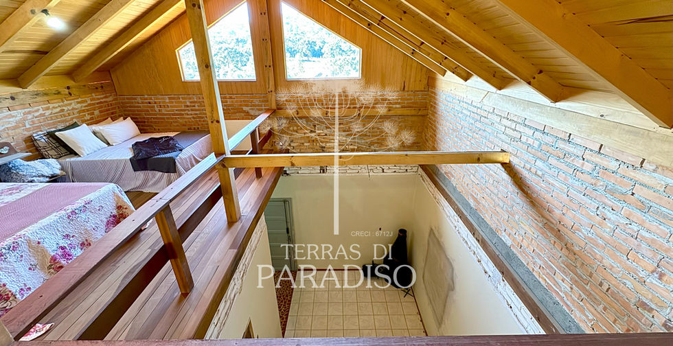 Mezanino arejado e iluminado, que se abre para uma charmosa sala de TV. O andar também conta com mais um quarto, um banheiro e um espaço aberto versátil, pronto para se transformar no que desejar, seja um ateliê, academia, sala de leitura ou apenas um cantinho de paz para contemplar a vista linda de Campo Alegre.